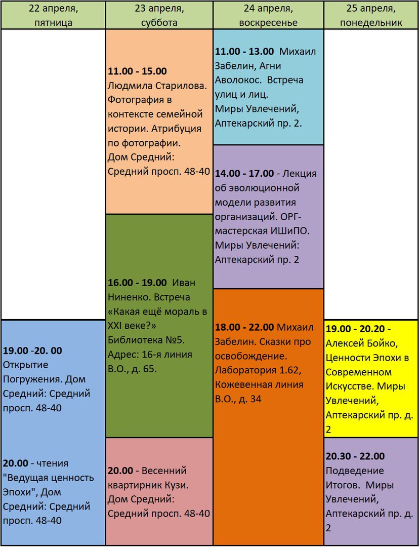 Институт Широкополосного Образования рад пригласить Вас на второе Культурологическое погружение! Темой этого погружения будет «Ведущая ценность эпохи». За эти четыре дня мы с Вами с разных сторон посмотрим на то, что такое ценности, и как их транслируем мы и другие, на то, что такое ценность Эпохи, и кем она задаётся, на то, какую каждый из нас занимает позицию относительно Мира и его изменения. Обо всём этом будем деятельно размышлять вместе с преподавателями, актёрами, искусствоведами, психологами, и много с кем ещё. Ждем Вас!